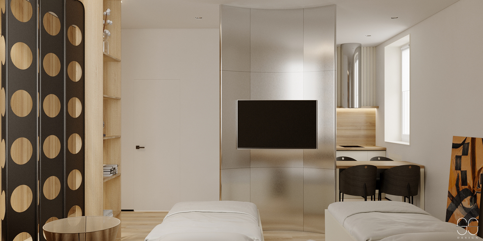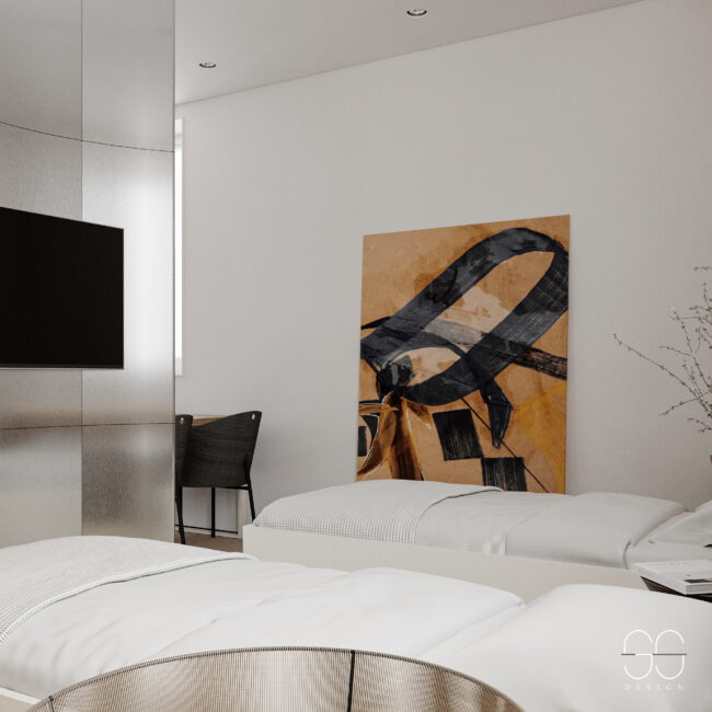 Дизайн-проект в Мурманске, реализованный в 2021 году, заключался в переделке старого салона красоты в квартиру студию для посуточной сдачи. Был сложный запрос: минималистичный стиль   и в то же время больше деталей в интерьере. После длительных обсуждений и совместной работы над концепцией, удалось достичь компромиссного решения, которое стало основой для успешного проекта.